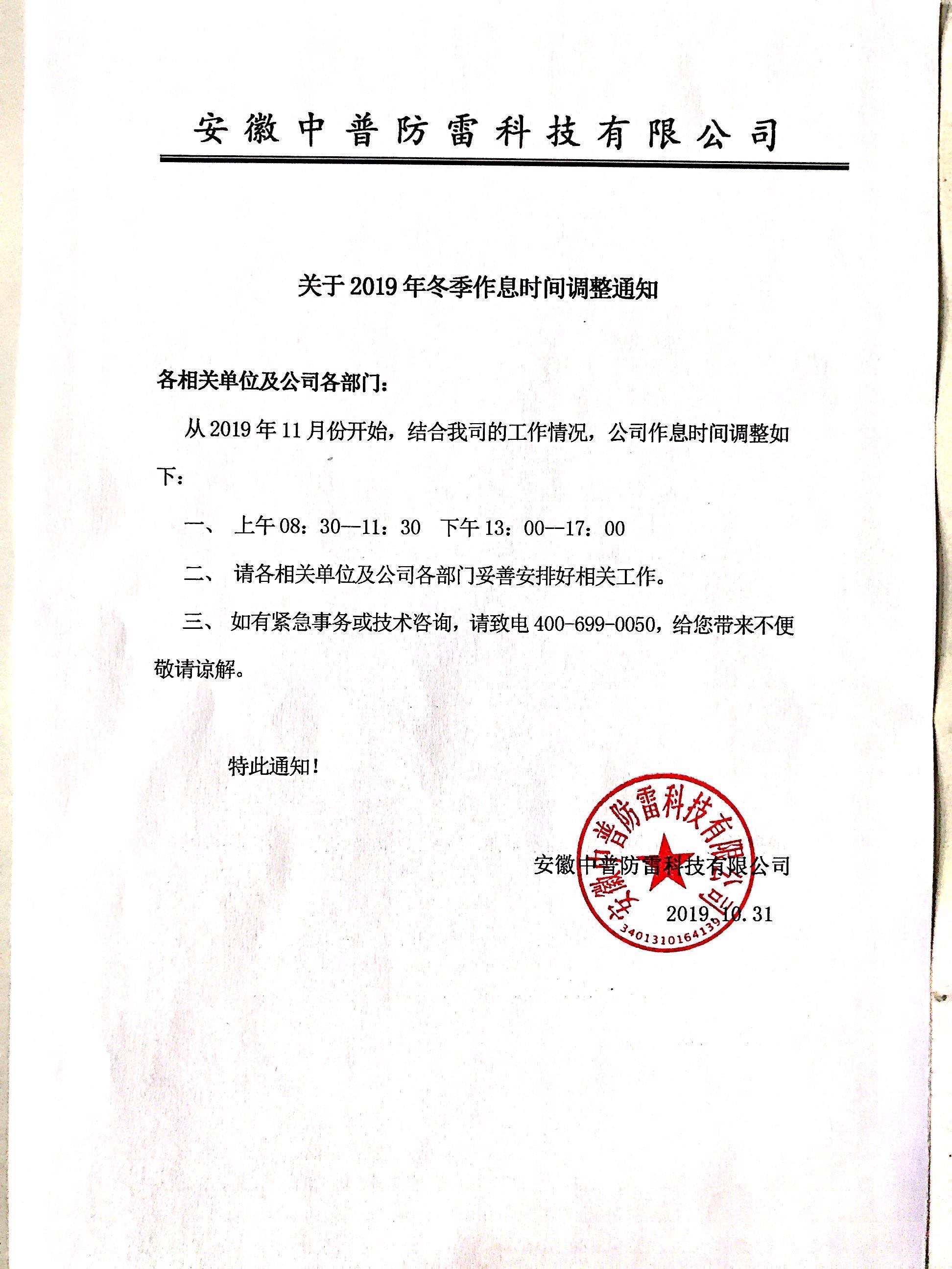 關(guān)于2019年冬季作息時(shí)間調(diào)整通知