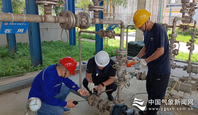 圖為技術(shù)人員檢查氫氣輸送裝置